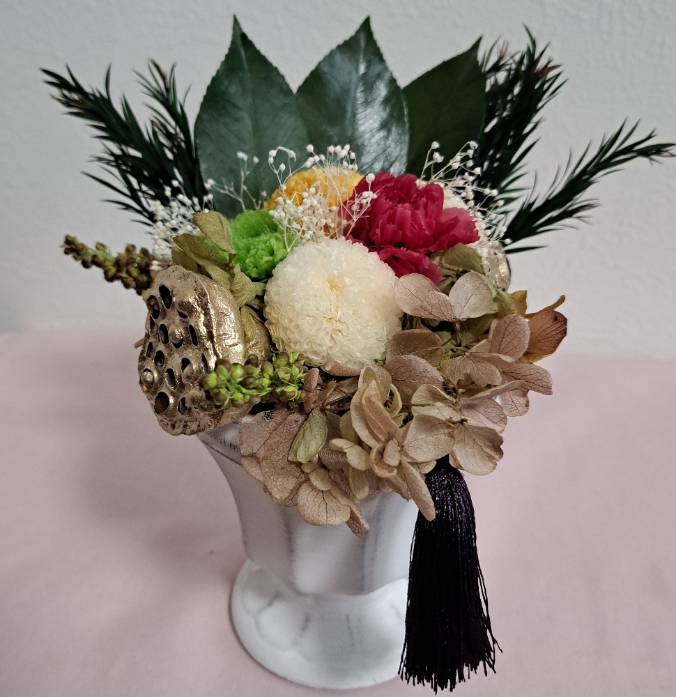 プリザーブドフラワー、ドライフラワーなどを使ったアレンジメントは、ご依頼を頂いてからお作りしております。そして、特別な波動を注入して、お客様にお渡し致します。
